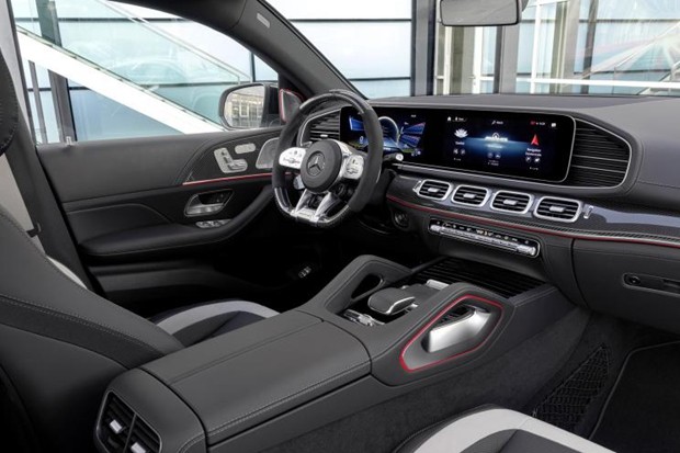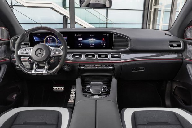 内饰方面,全新AMG GLE 63 4MATIC 轿跑SUV在造型和布局上与53车型没有区别,整体延续了运动气质风格十足的“碳纤维化”氛围,但细节处的材料和配色运用有所不同。新车还配备了碳纤维方向盘、Nappa真皮装饰的AMG座椅(可选装其它种类皮革)。S车型进一步配备了灰色安全带,以及银灰色座椅缝线。