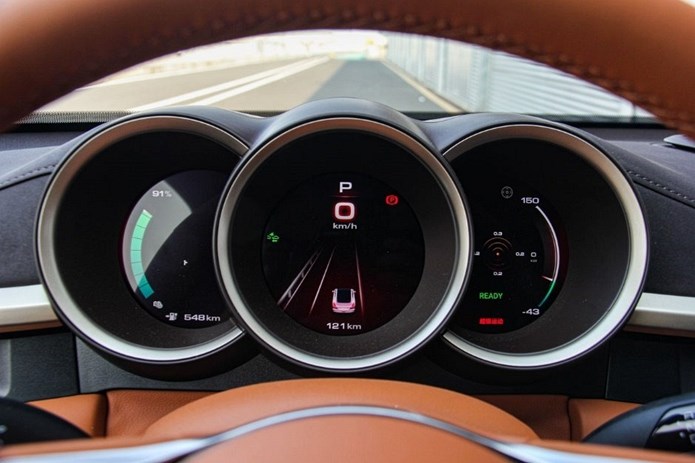 欧拉的工程师们为闪电猫准备了3套不同的动力系统,单电机标准续航版、单电机长续航版和双电机四驱高性能版,对应的CLTC续航里程本别为555km、705km和600km。我拿到的这辆试驾车是一辆四驱高性能版,分别在前、后桥上装配了两台永磁同步电机,综合最大功率达到了300kW,最大扭矩680Nm,在4.3秒内即可破百。