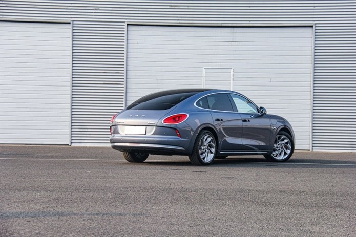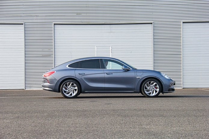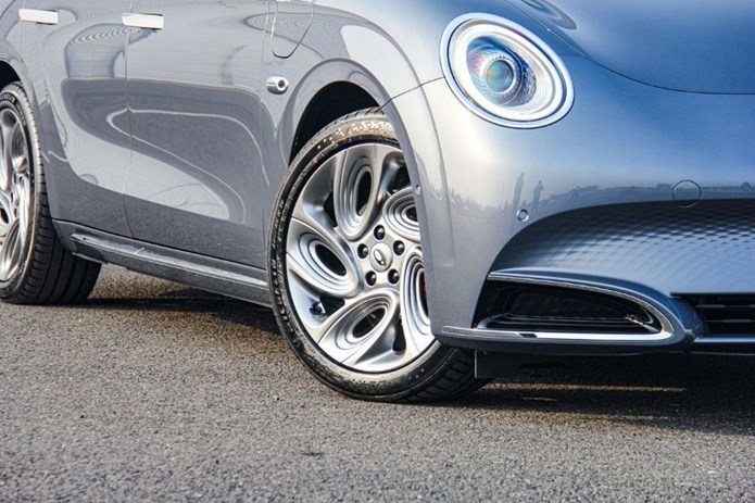 整车柔和的线条,加上极具巧思的空气动力学设计,让闪电猫的风阻系数仅为0.22,对于提升续航有着非常积极的帮助。尾门上的自适应电动尾翼,可以根据不同的车速实现智能调节,除了提升空气动力学性能之外,好看才是王道!我拿到的这辆顶配试驾车,装配了19英寸的铝合金轮辋,匹配尺寸为235/45 R19的米其林Pilot Sport EV轮胎,不仅滚动阻力较小,还能提供不错的运动性能。