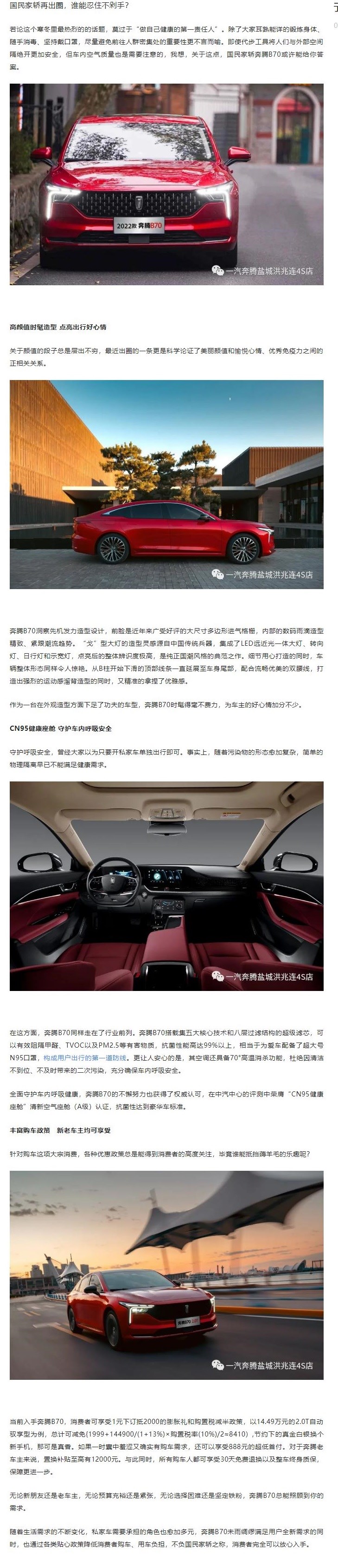 关注呼吸健康,守护国民出行,奔腾B70做对了什么?