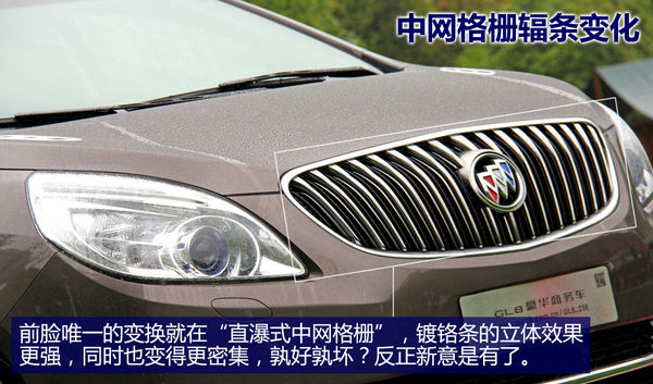从车头照片想要分辨出眼前的GL8是否是2014款新车型有不小的难度,它只在细节地方进行了调整,整体维持了原样。前脸唯一的变换就在“直瀑式中网格栅”,镀铬条的立体效果更强,同时也变得更密集,孰好孰坏?反正新意是有了。