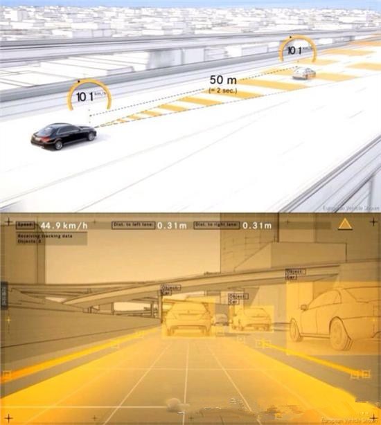 限距控制系统增强版(DISTRONIC PLUS)带转向辅助,可以通过车道行驶指引功能功能减轻驾驶者负担,并在交通拥堵时具有自动跟随前方车辆的功能,甚至进行全力刹车以确保安全。如果驾驶员未能作出任何反应,预防性安全制动系统(PRE-SAFE® Brake)将自动刹车。