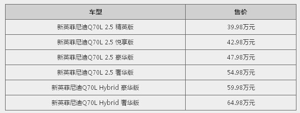 新英菲尼迪Q70L价格表: