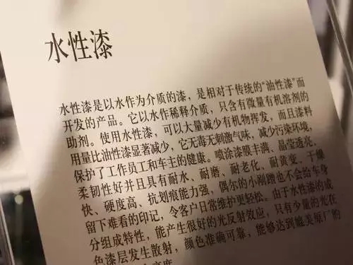 水性漆以水作稀释介质,只含有微量有机溶剂的助剂。它无毒无刺激气味,对人体无害,也不污染环境。水性漆可以大量减少有机物挥发,而且漆料用量比油性漆显著减少,最大限度降低对环境的污染,保护了工作员工的健康,还有最重要的——保障了车主的健康。
