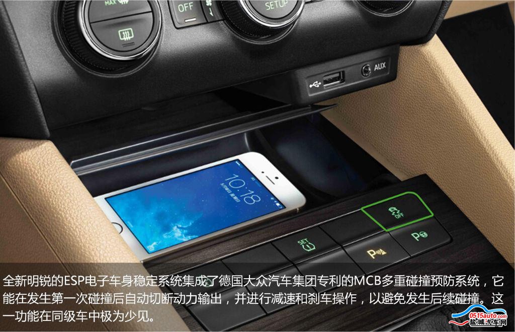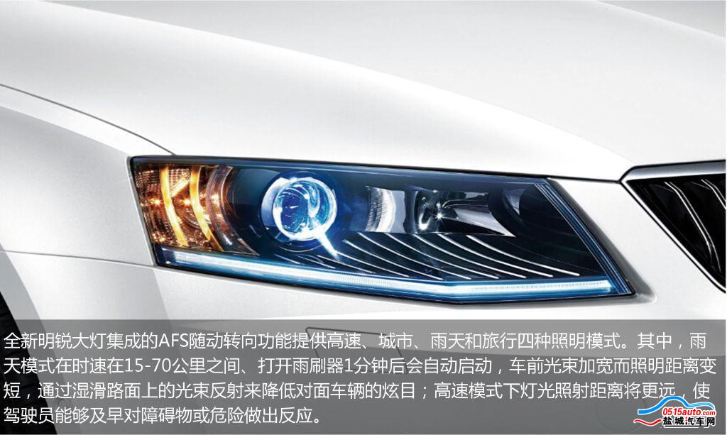 在智能灯光系统的运用上,全新明锐搭载了双氙气前大灯、LED日间行车灯,前大灯还集成了先进的AFS随动转向功能,光束可以随方向盘的转动而转动,确保弯道中的高能见度;另外,大灯还能通过位于悬挂上的位置传感信号来感应路面变化,随坡度自动调整大灯高度位置。此外,全新明锐还配备了前雾灯转向辅助照明系统,当近光灯开启并且车速小于40km/h时,雾灯会随相应一侧的转向灯开启而自动点亮,为侧前方近60度的范围内提供辅助照明,有效减少夜间过弯时的近处盲区。
