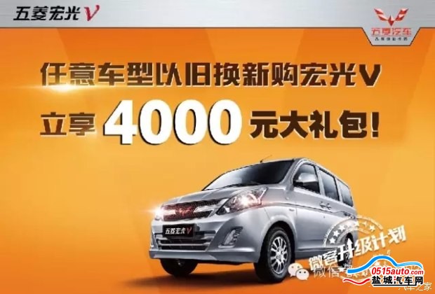 三、用户旧车(指所有品牌、车型)置换购买宏光V还能享受置换优惠!旧车开久了是不是早想换部新车?功能强大的新微客,比起传统的微客更适合自营生意的小主们哦!现到盐城金宇/盐城金骏置换五菱宏光V可享4000元大礼包!