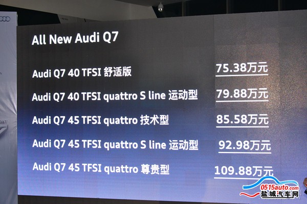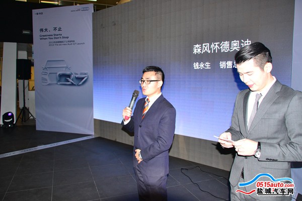 2015年12月12日晚,"伟大 不止"全新奥迪Q7于盐城森风奥迪怀德4S店荣耀上市,整场上市会以"伟大,不止"为主题,诠释了全新奥迪Q7卓绝的产品实力,全新奥迪Q7售价为75.38-109.88万元,以更迭时代的产品气势,正式开启了首款第四代SUV在中国的伟大历程。活动现场气氛热烈,欧美乐队LIVE SHOW,精美可口的冷餐自助选择,参与德州扑克赢大奖!