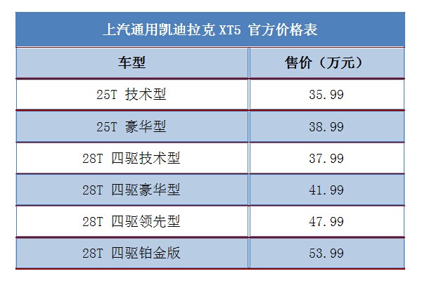 2016年4月12日,上汽通用旗下凯迪拉克XT5正式上市。凯迪拉克XT5定位于中型豪华SUV,全系配备2.0T涡轮增压直喷发动机和8速手自一体变速器,并有前轮驱动和四轮驱动可选。此次上市的上汽通用凯迪拉克XT5总共有六款车型,官方零售价为35.99-53.99万元,现在就请跟随我的镜头,一探究竟吧。