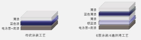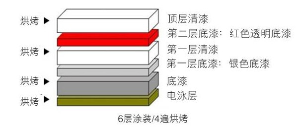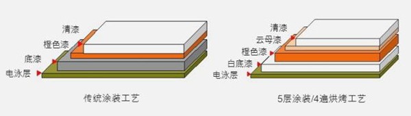 装饰涂层在烘干之后体积变小,使云母颗粒的排列更加紧密,提升涂层的反射能力和层次感。云母颗粒兼具透光和反光的特性,设计师利用此特性打造出更为立体和动感的车身颜色。