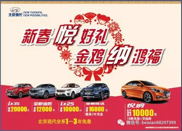 时光飞逝,充满希望的2017年阔步向我们走来了。辛苦了一年的您是否打算买辆新车,让新年出行更加便利?新年想要买车,肯定要低价,要更多好礼,那么别犹豫了,赶紧来森风北京现代团购盛宴吧!低价好礼统统给到你!让你2017年更惊喜,更欢乐!