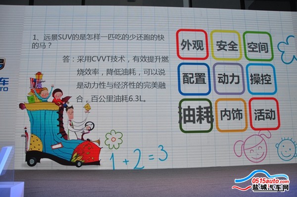 7月15日,在盐城阜绅吉利4S店,吉利汽车“幸福17来——远景SUV幸福亲子秀区域赛盐城站”幸福开启。当天,来自预赛激烈角逐产生的各组家庭带着各自家的萌娃闪亮登场,一同为各自的幸福证言。活动在一场可爱的萌娃表演中拉开帷幕,一股清新自然的纯真气息迎面而来。此次活动不仅为远景SUV用户提供了一次亲子互动的平台,同样诠释着远景SUV幸福座驾的品质与内涵。