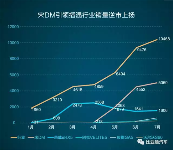 7月,宋DM以5069辆的成绩,领跑新能源汽车单月销量。这已是它自4月上市后第三次蝉联插混车型月销冠军了。短短几个月,宋DM的累计销量便已达11907台。即便放眼全球,也称得上当下“最红、最热”的插混SUV。