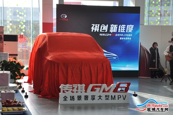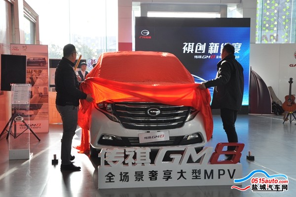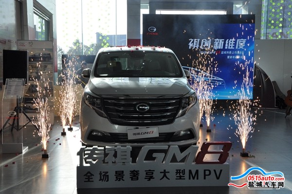 2018年1月13日,广汽传祺旗下全新MPV——GM8在盐城和泰4S店正式上市,售价区间为17.68-25.98万元,推出豪华版、尊享版、尊贵版以及旗舰版共4款车型。新车定位偏轻商务市场的7座版MPV,其实与别克GL8商旅车的定位一样。购买GM8的用户可享受“法人抵税、售后专属、优惠利率、机场VIP、道路救援”等五项礼遇。