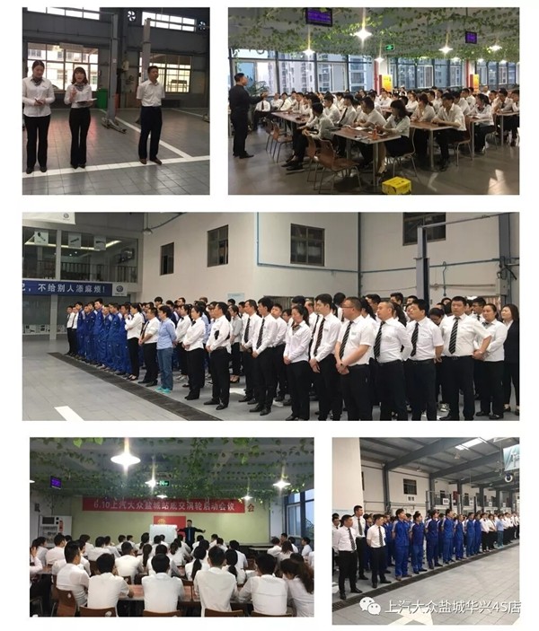 6月4日下午15时,在区域各领导、总部老师的带领下,盐城三家经销商总经理、销售总监、市场总监、零售经理、内训师齐聚,召开“为价打Call  全城心动——上汽大众盐城区域大型厂家限时团购会”及全体销售顾问的启动大会。6月5日经销商总经理们回到各店组织店内工作人员进行了动员誓师大会,将领导及老师的鼓励和指导思想传达给奋战前线的精英们! 现场气氛愈发激烈!大家都信心满满!预备了最好的精神状态迎接挑战!