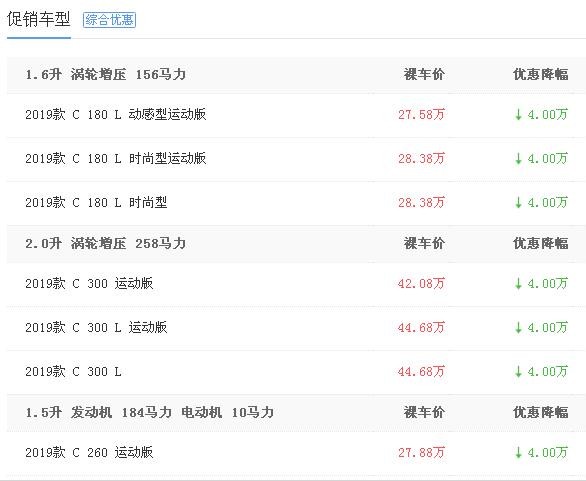 近日,本店内有奔驰C级销售,颜色可选,目前购车部分车型可优惠4万元,感兴趣的朋友可以到店咨询购买,详情见下表: