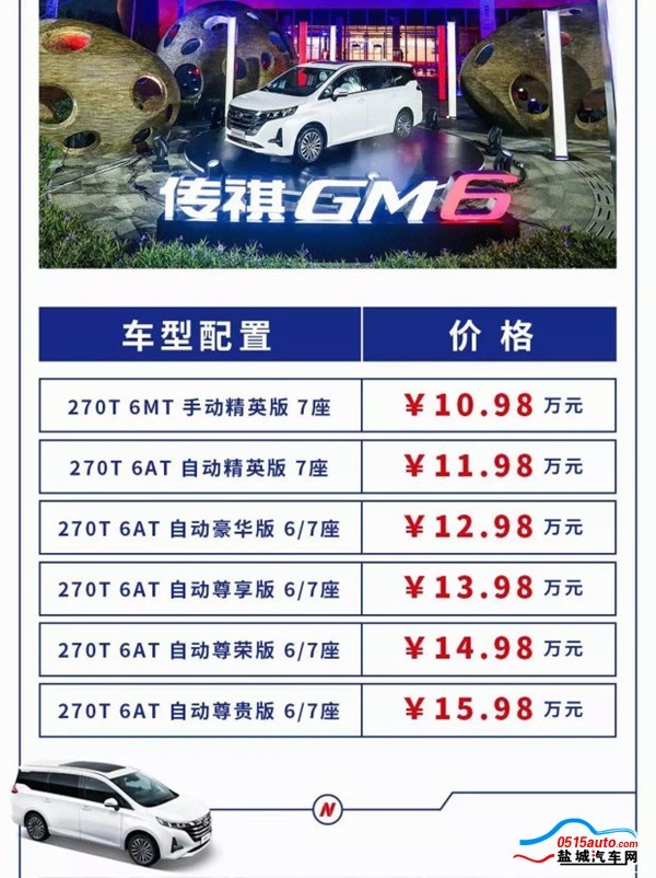 动力部分,GM6搭载一台1.5T发动机,最大功率126kW,峰值扭矩265Nm。与发动机搭配的是6速手动、6速自动变速箱。