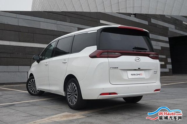 车身长宽高分别为4780*1860*1730mm(装配鲨鱼鳍天线时高度为1765mm),轴距为2810mm。其轮胎规格为215/60R16和215/55R17。GM6的车尾设计较为方正,尾灯采用贯穿式造型设计,但实际能亮的部分仍只有两侧的尾灯。