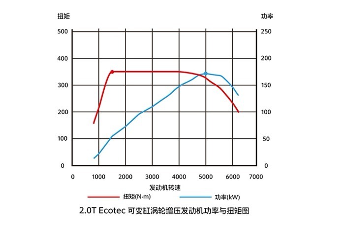 第八代Ecotec 2.0T发动机可在1500-4000的宽广转速范围内实现350牛·米最大扭距
