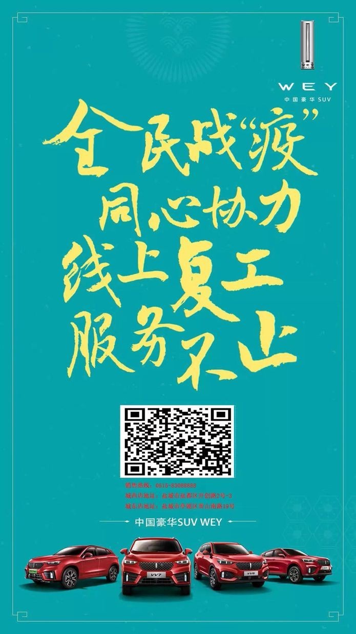 疫情无情人有情,盐城德通WEY送温暖了!扫描下图二维码进去智能展厅领取最高5000元购车健康基金!