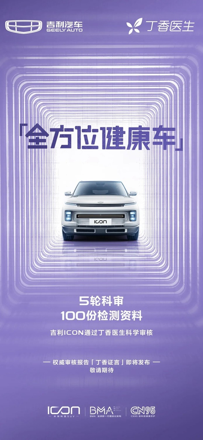 值得一提的是,在吉利ICON通过科审后,丁香医生还会通过报告、视频等方式对检测结果进行公布。
