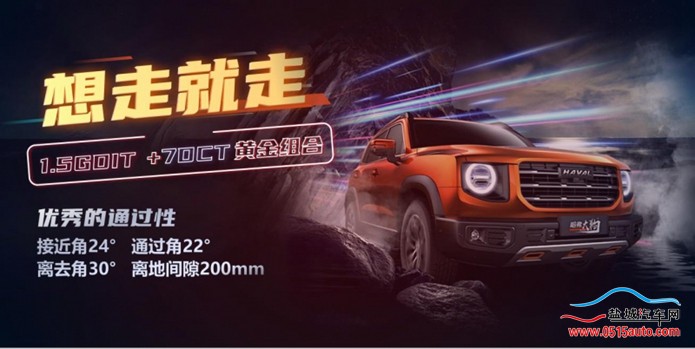 柠檬平台带来更加高效的燃油动力,低排放、轻量化、高性能的1.5GDIT 7DCT黄金组合的澎湃输出,动力可以说随叫随到。优秀的通过性更是他的强项,接近角24°、通过角22° 、离去角30°,离地间隙200mm,无论都市疾驰,还是跋山涉水,大狗都能轻松应对,是新人类说走就走的勇气和底气。