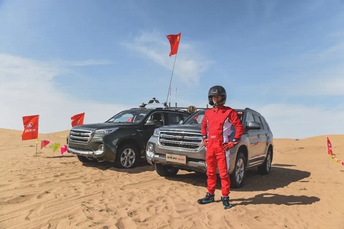 搭载毫末智行自动驾驶系统Hi pilot的哈弗H9(左) 越野顶级车手鹿丙龙与哈弗H9(右)