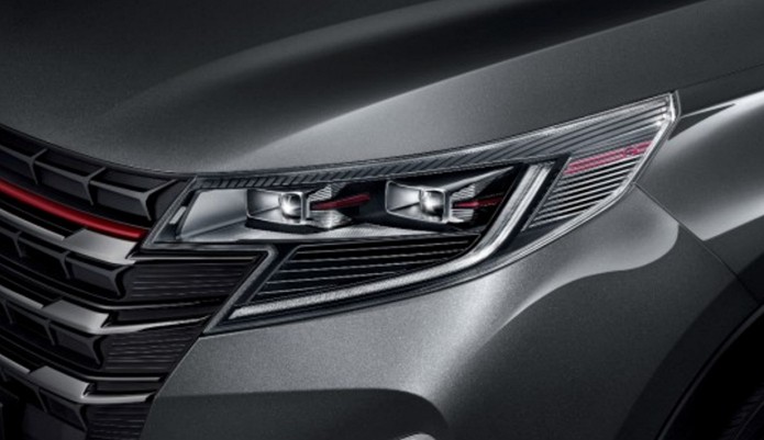 脸采用广汽传祺家族最新的凌云翼 3.0 造型设计,左右两侧连接着深邃的 LED 大灯组,配