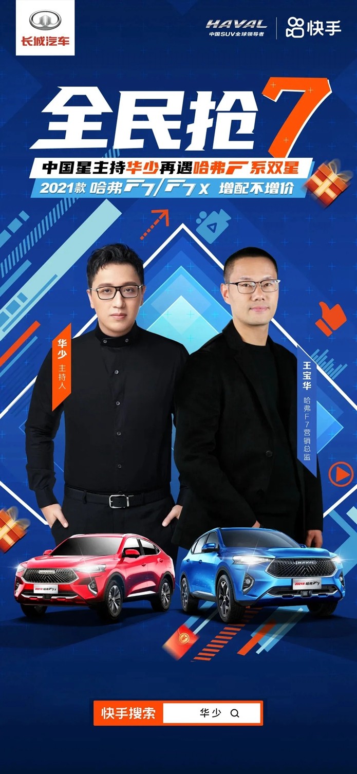 10月18日,2021款哈弗F7#全民抢7直播季#首战正式打响。作为一款全球智能潮品SUV,2021款哈弗F7强势登陆中国星主持华少个人直播带货专场,不仅在直播间大秀潮智魅力,还开启“521宠粉专场”模式狂撒超级福利,瞬间引爆整个直播间,让网友直呼爱了爱了。整场直播战果颇丰,实现在线累计观看超百万,点赞超百万的直播盛况。