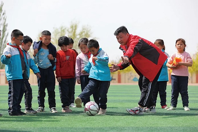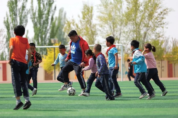 刘逢春老师看到学校的足球场没人在上面踢足球,