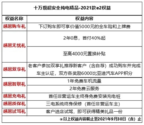 对了,最后再告诉大家一个好消息。现在购买2021款e2能享受至高9000元的综合钜惠和众多超值好礼。还等什么?买它买它买它!