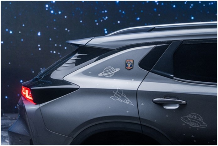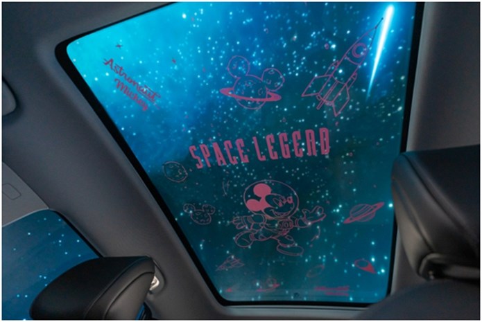 在外观方面,能够看出设计师将造型各异的专属车贴以及车身拉花,巧妙地融入宇宙、星空等元素,加之重新设计的Menlo Adventure徽标和巧然跃于车身上的宇航员米奇头像,令整车富有探索与历险的气息;在夜光星河全幕天窗上还布满太空探索和宇航员米奇的图案,巧妙营造出星际旅行的乐趣。