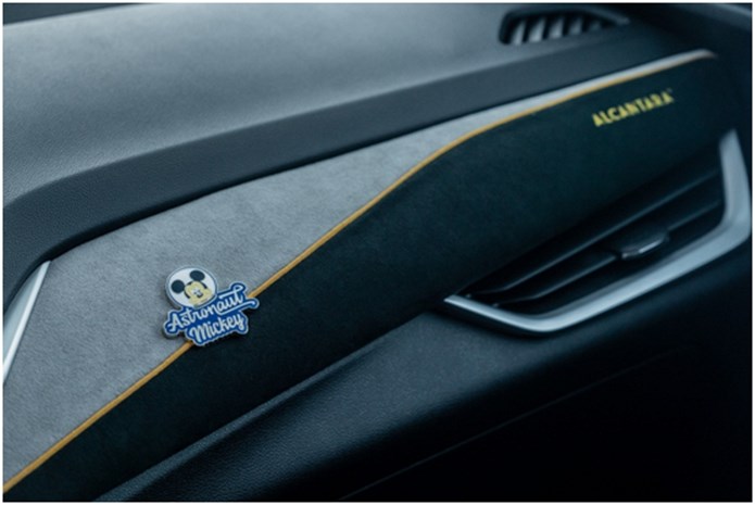 车内采用了米奇宇航徽标,应用在方向盘和中控面板上以及座椅头枕上,座椅采用了Alcantara材质包覆,极具质感,提高了驾乘感受。启动车辆,车载屏幕变为米奇图标的"太空操作台",颇有专属感,相信会得到车迷们的一致好评。配置方面,新车搭载的科大讯飞语音系统得到了更好的提升,加强了操控乐趣。除此以外,米奇太空版专属礼盒也将随车附赠。