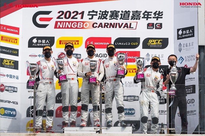 9月4日-5日,2021 CEC中国汽车耐力锦标赛揭幕战在宁波国际赛车场打响。东风Honda Racing Team(以下简称DHRT)首次出征,谢欣哲/朱胡安、邹思锐/朱戴维和张大胜/李惠玮三组车手驾驶着思域Hatchback赛车在两个阶段比赛中均有出色表现,助力DHRT车队勇夺CEC史上首个厂商杯冠军。