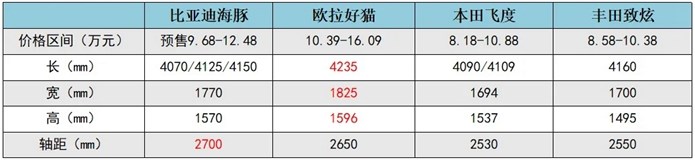 很多人误以为,比亚迪海豚最大的对手是欧拉好猫之类,其实不然,它的对手应是本田飞度、丰田致炫等年轻化的两厢车。