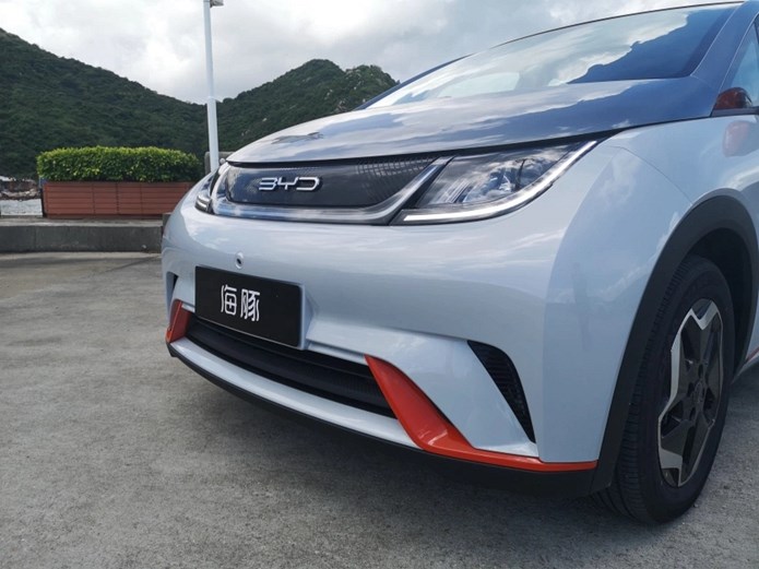 海豚采用“海洋美学”设计理念,和王朝系列所采用的“龙颜美学”不同,海洋美学大量应用海洋生物的具象形态和意象姿态,显得更加灵动、时尚、年轻化。反映在“海豚”身上,就是这款车更加活泼、可爱,像海豚一样萌趣。