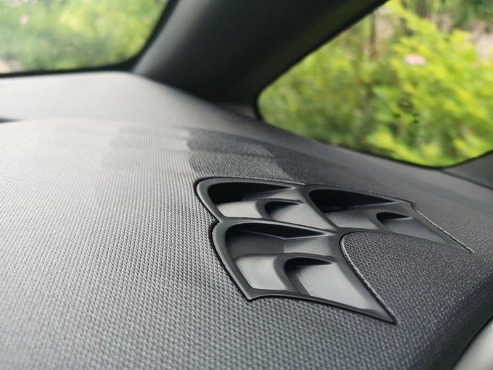 门板扶手设计如同高速游动的“海豚”,内门把手造型又犹如“海豚”的胸鳍,扬声器罩的表面如同海面的粼粼波光,种种细节,都可以让人感受到设计师的用心。