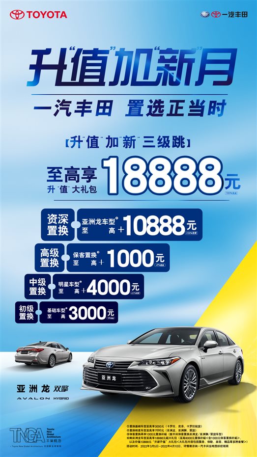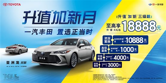 购亚洲龙车型至高享18888元超大礼包(至高8000元置换补贴<含1000元保客置换补贴>,以及价值10888元“开新升值”大礼包。