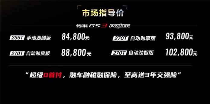时代在变,年轻人的需求也在变,基于对年轻一代当下用车需求的深刻洞察,2022款GS3 POWER基于客户需求焕新升级,不仅延续“劲省”优势,更在造型设计、智能互联等方面进阶加码,实现产品力的越级提升,以“增配不增价”的“劲”阶实力和“劲”致诚意,为大家带来更值得期待的超值驾乘之享,再塑小型SUV市场的性价比标杆。