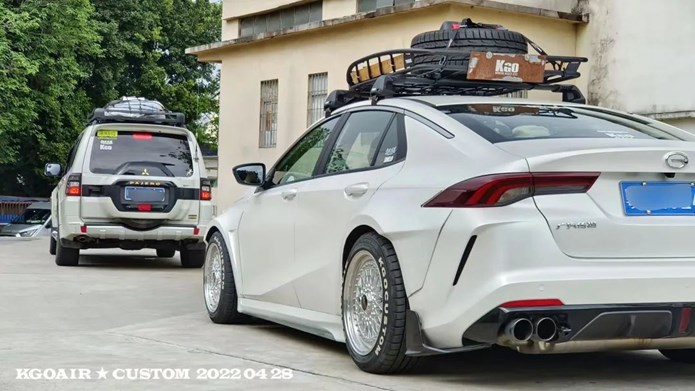 KOG5人组们为更好应对沙石路面选装的4条粗花纹轮胎,在城市高速上胎噪很大,好在影豹的隔音做的还不错,车厢内的舒适度能得到保持。