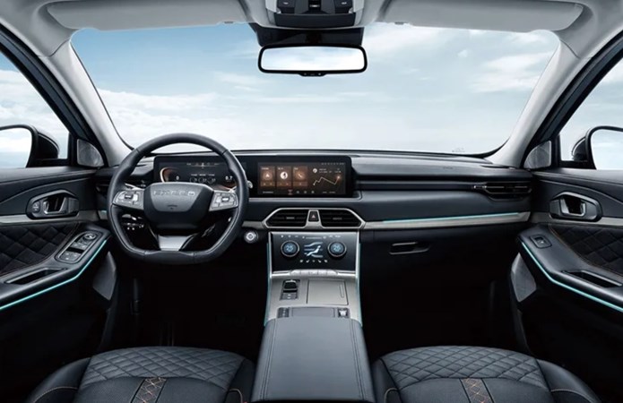 星途凌云的内饰比较运动,采用了大量菱格压花营造氛围感;线条也是从左到右横向贯穿式设计;和福特领睿一样运用12.3英寸的双联屏,集成了导航、音乐等常用功能。
