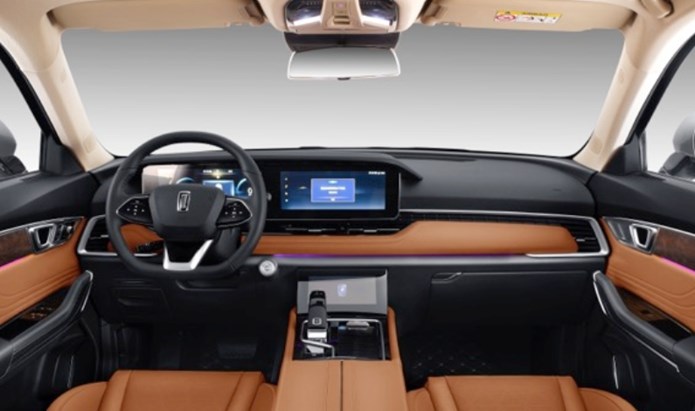 奔腾T99的内饰风格以黑 棕为主色调,内敛但不沉闷,中控台、门板等手能触摸到的地方都是皮质包裹;全液晶仪表盘与中控屏相连组成联屏,中控屏尺寸12.3英寸,下方还加入了空调液晶控制屏,此外还有水晶挡把、超大全景天窗等加入,带来了不错的质感。