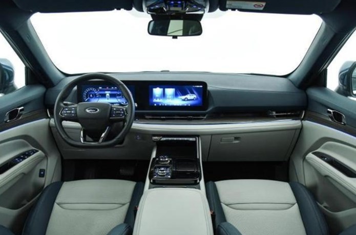 福特领睿内饰有单色和黑白拼色,布局简约干净;采用双12.3英寸一体式智联屏,悬浮设计,造型规整,搭配平底方向盘,显得非常简洁,没有过多的装饰让车内看起来很通透。