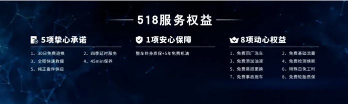 购买奔腾T99可享一汽奔腾的518服务权益,包含5项挚心承诺、1项安心保障、8项心动权益。有30日免费退换,四季延时服务、全程快速救援,还有免费添加油液、特殊日免工时费、免费基础流量等等,购买、使用、保养、维修都涵盖在内,能为车主省下不少费用,而且也更省心。