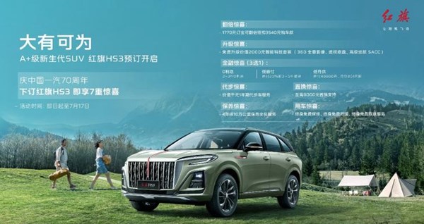 日前,我们从官方了解到,红旗HS3预售价为15万元起。新车将于7月17日正式上市,即日起预订并在2023年7月17日前购车的用户,将享受“70周年HS3七重惊喜”专属权益。红旗HS3定位紧凑型SUV,采用红旗全新的设计语言,2770mm的轴距在同级别中很有优势。